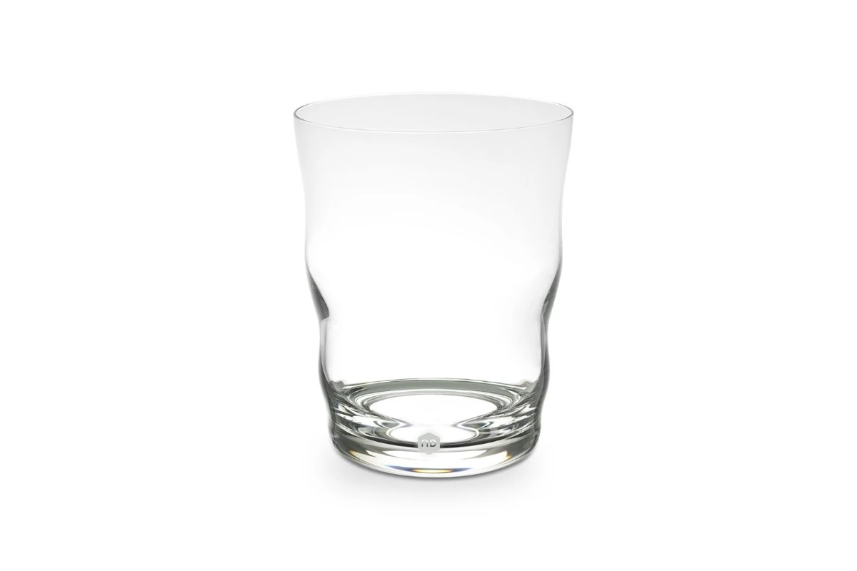 Die dreigliedrige Bauform wurde nach dem Gesetz des Goldenen Schnittes komponiert. Das im Glas befindliche Wasser oder der Saft wird in seiner biologischen Wertigkeit gestärkt und im Geschmack blumiger. Jedes Stück ist mundgeblasen und ein Unikat.