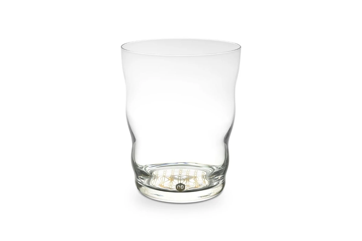Die dreigliedrige Bauform wurde nach dem Gesetz des Goldenen Schnittes komponiert. Das im Glas befindliche Wasser oder der Saft wird in seiner biologischen Wertigkeit gestärkt und im Geschmack blumiger. Jedes Stück ist mundgeblasen und ein Unikat.