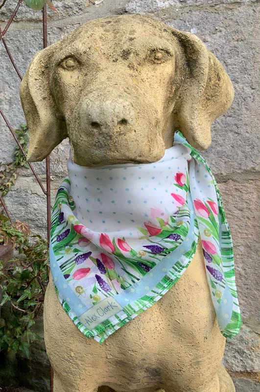 Fabriqué en chiffon et présenté dans une pochette en tissu. 61 cm x 61 cm.