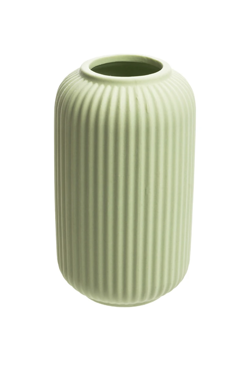 The small GENTLE BREEZE GREEN vase impresses with its simple elegance. It comes in a subtle green colour that immediately catches the eye and gives every room a friendly atmosphere. The harmonious, simple shape of the vase fits perfectly into modern living concepts and is ideal for larger flower arrangements. The surface has fine grooves that give the vase a special texture and depth.