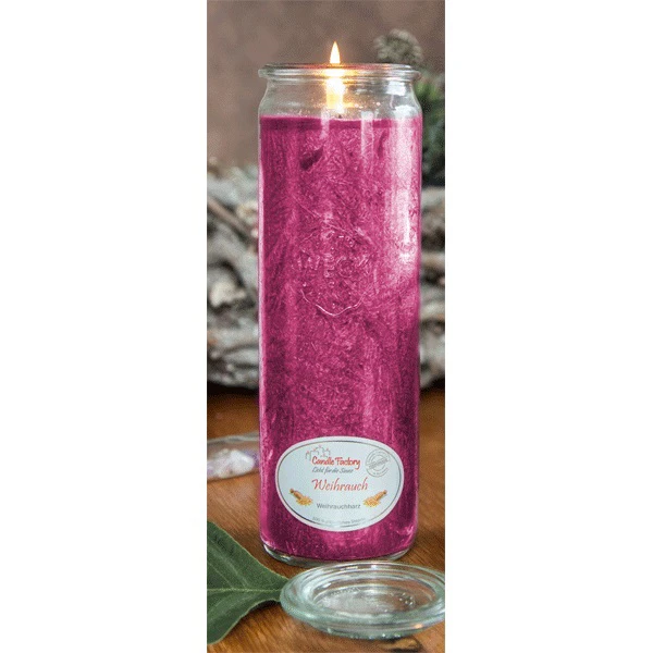 Ein weicher Duft von balsamischem Weihrauch – diese schönen von Hand gegossenen Stearinkerzen im wiederverschliessbaren Weck®-Glas bieten Ihnen herrliche Dufterlebnisse und erinnern an heilige Zeiten. Sie eignen sich perfekt für die Terrasse, den Balkon, den gedeckten Tisch oder schlicht als Dekoelement.