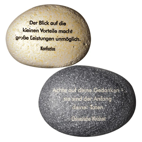 Schenken Sie diese grauen und cremefarbenen Steine. Sie machen das Leben leicht! Denn sie sind mit Lebensweisheiten bedruckt. So lassen sie sich wie Orakelsteine nutzen. Einfach eine Frage stellen und mit geschlossenen Augen einen der Steine auswählen. Dann die Augen öffnen, die Weisheit lesen - und einen Schritt weiter sein in der Entscheidungsfindung.