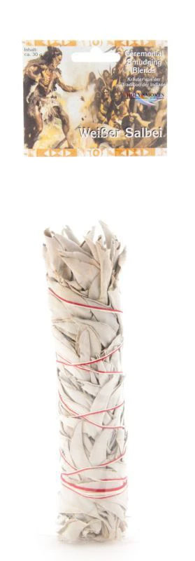 Weisser Salbei wächst hauptsächlich im sonnigen Kalifornien und ist eine der stärksten Pflanzen zum Reinigen und Segnen von Räumen, Lebewesen oder Gegenständen. Sein Duft ist eher streng. Doch unter den Ureinwohnern Nordamerikas gilt er als eine der wenigen Pflanzen, die reine positive Energie tragen. Deshalb wird er verwendet, um Böses abzuwehren und ein geklärtes Bewusstsein zu erzeugen. Oft wird er dem Westen zugeordnet, der Richtung der verehrten Ahnen, des Sonnenuntergangs und der spirituellen Ruhe des Abends.