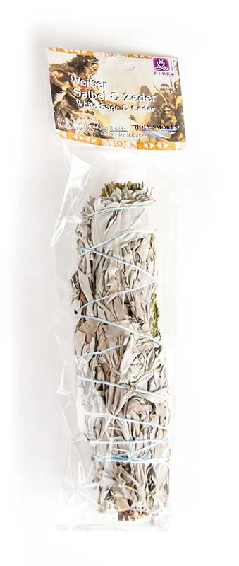 Weisser Salbei ist ein intensiver Reiniger. Er vertreibt negative Energien, Krankheitsdämonen und niedere Astralwesen. Er klärt das Bewusstsein und befreit von allen möglichen Anhaftungen. Die Zeder unterstützt die reinigende Wirkung des weissen Salbeis und gibt uns das nötige Vertrauen und stärkt die Intuition.