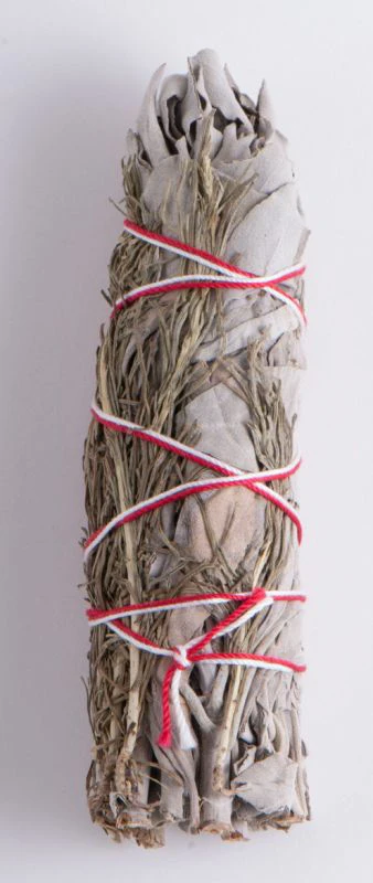 Die Weisser Salbei/Rosmarin Mini-Kräuterbündel oder auch Smudges genannt, werden für eine reinigende Räucherung verwendet. Der weisse Salbei gilt als intensive Reinigungspflanze. Rosmarin verstärkt den Schutz vor negativen Energien, entkräftet Störfelder und soll die Raumluft desinfizieren. Er hilft, alte Wunden zu heilen und bringt uns die Lebensfreude zurück.