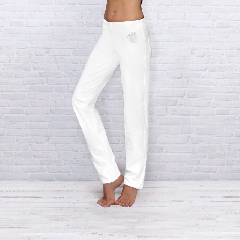 Die Wellness-Hose lang unisex in weiss von The Spirit of Om ist eine bequeme Hose aus elastischem Baumwoll-Lyra für Damen und Herren. Sie ist ideal für Yoga, Tai Chi, Qi Gong, Meditation und therapeutisches Arbeiten. Die Hose lässt sich wunderbar mit den Oberteilen von the Spirit of Om kombinieren.