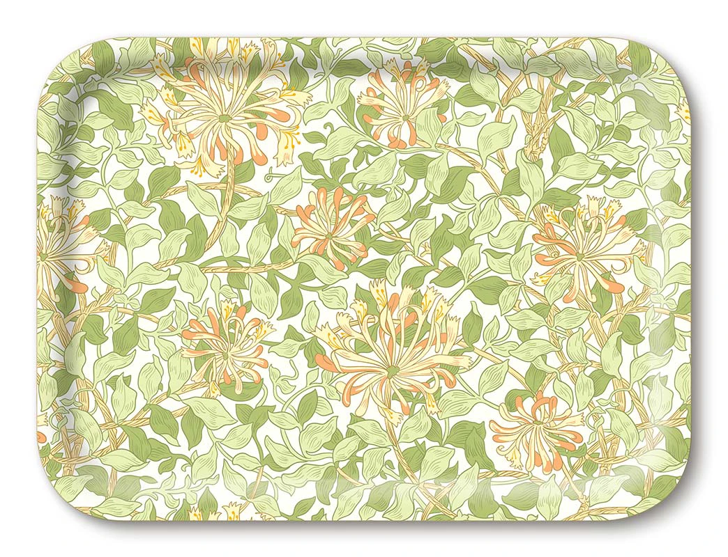 Honeysuckle von 1883, das erste von nur drei Tapetenmustern von May Morris, ist ein zeitloser Klassiker. Aufwändige Geissblattblüten und anmutige Blätter verflechten sich in diesem komplexen und exquisiten Muster der jüngeren Tochter von William Morris.