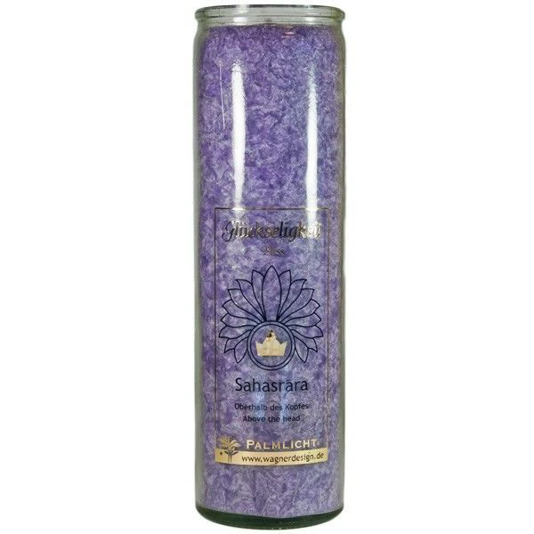 Aus rein pflanzlichem Palmöl hergestellt, bildet diese farbenprächtige Kerze beim langsamen Abkühlen wunderschöne Kristalle. Passend zum Kronen-Chakra ist sie in der Energiefarbe Violett gehalten. Die Chakra-Kerze brennt mit russarmer, heller Flamme.