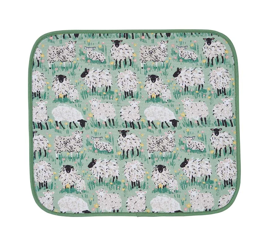 Inspired by springtime walks through the lush Northern Irish countryside, this beautiful Dish Drying Mat is sure to bring joy and delight to every style of kitchen. The curly fleeces and friendly facial expressions add character while the bright meadow flowers are the perfect finishing touch.