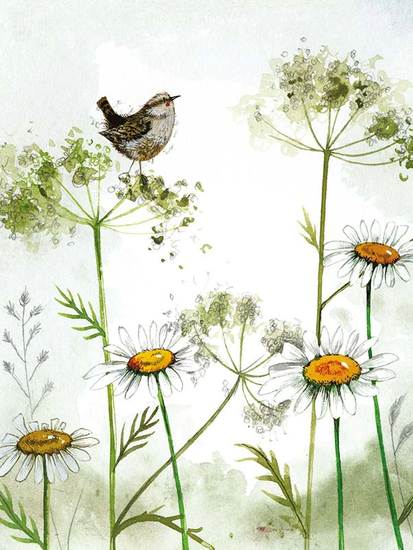 WREN AND DAISIES