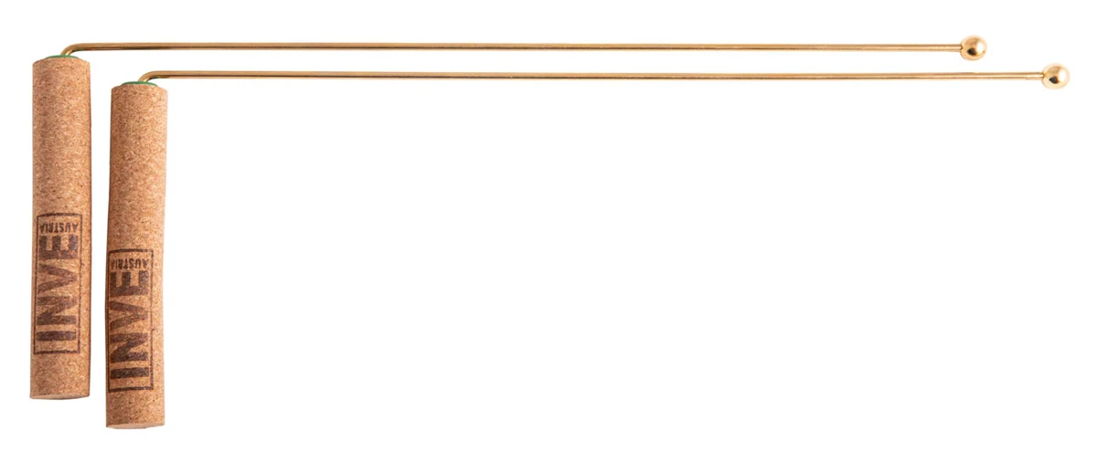 Besonders hochwertige Wünschelrute. Die beiden Griffe sind aus leichtem Kork und haben eine sehr leichtgängige Mechanik. So reagiert die Wünschelrute schon auf kleinste Schwingungsänderungen. Seit jeher werden Wünschelruten verwendet, um Wasseradern, Erdstrahlungen oder Erdgitter zu finden. Hinweise dafür gibt es schon bei den alten Babyloniern, Kelten oder Germanen.