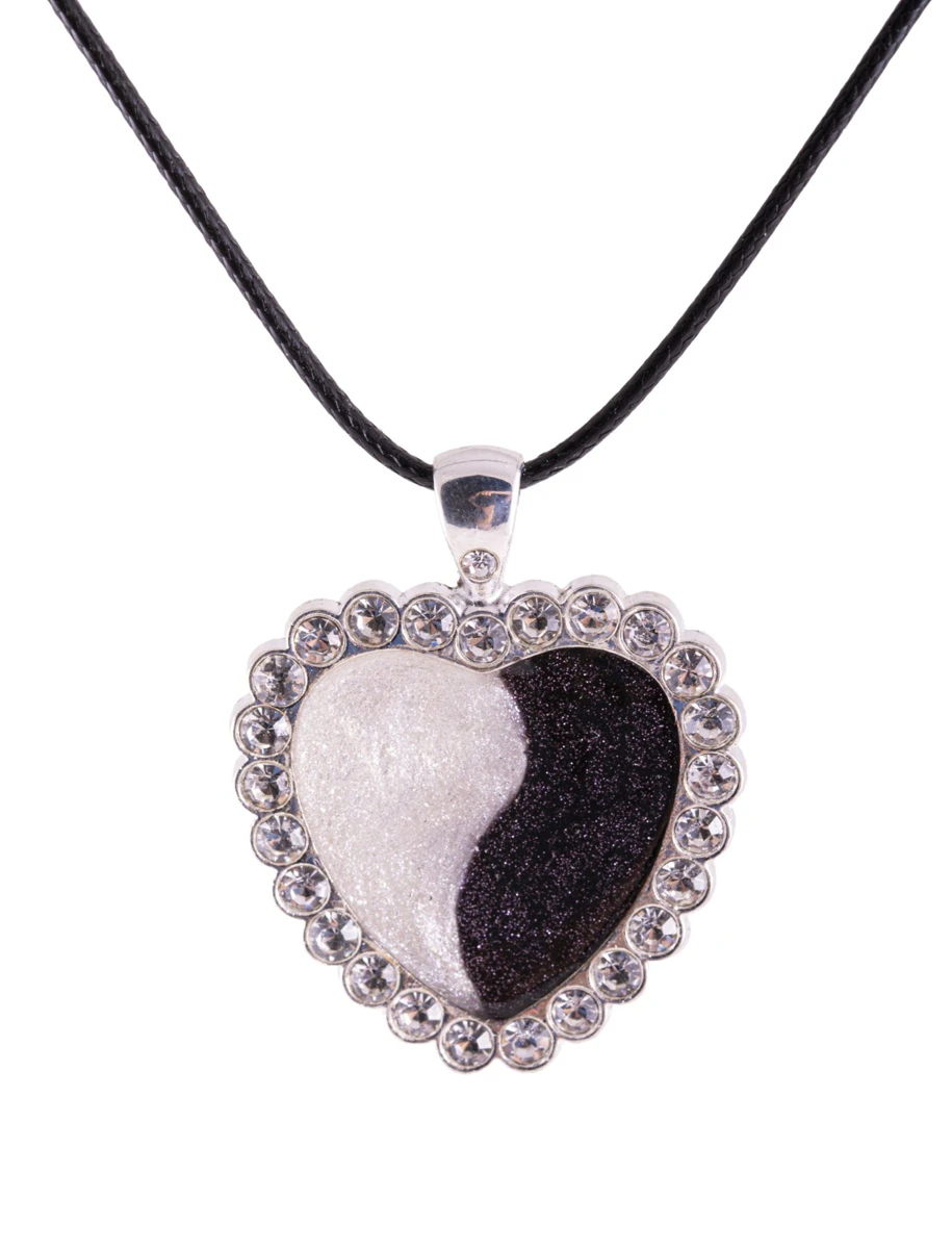 Ying Yang Herz - Herzanhänger mit gewachster Baumwollkette