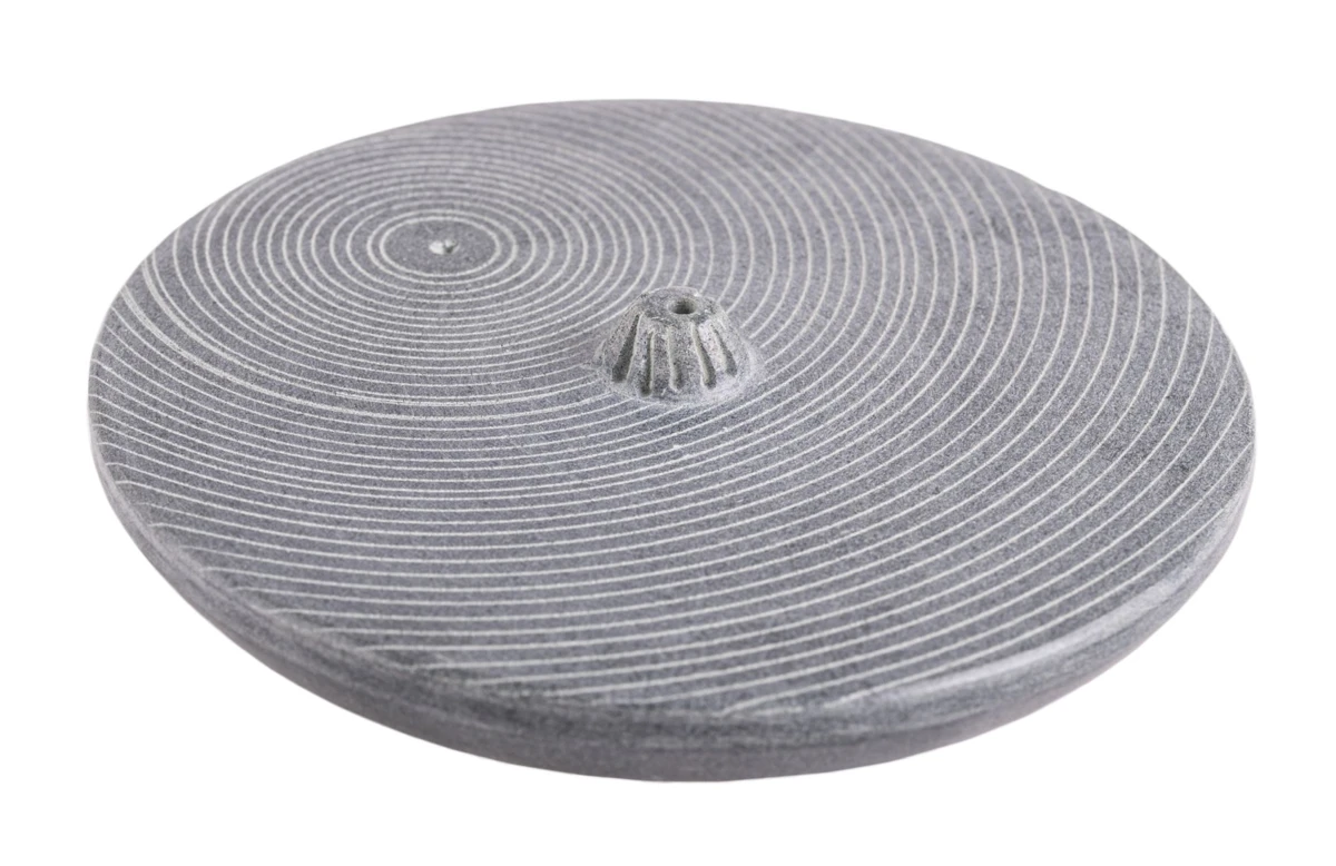 Runder, mystischer Räucherhalter aus Speckstein für Räucherstäbchen.