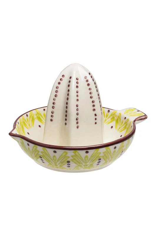 Der perfekte kleine Küchenhelfer ist diese schöne handgestempelte Zitruspresse. Aus Steingut hergestellt, liegt sie gut in der Hand und überzeugt mit ihrem fröhlichen Muster. Kombiniere die verschiedenen Produkte der MIX´N´MATCH Serie in deiner Küche und bring gute Laune in dein Zuhause.